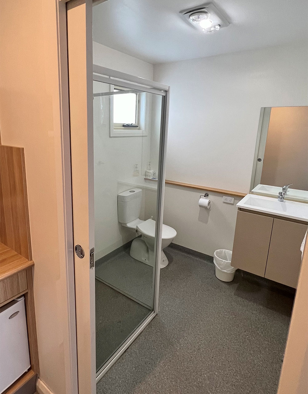 Our standard double/triple rooms are fitted with a queen-sized bed and one single bed with a private bathroom with a shower. Small kitchenette with microwave, sink, toaster, kettle and a small bar fridge.